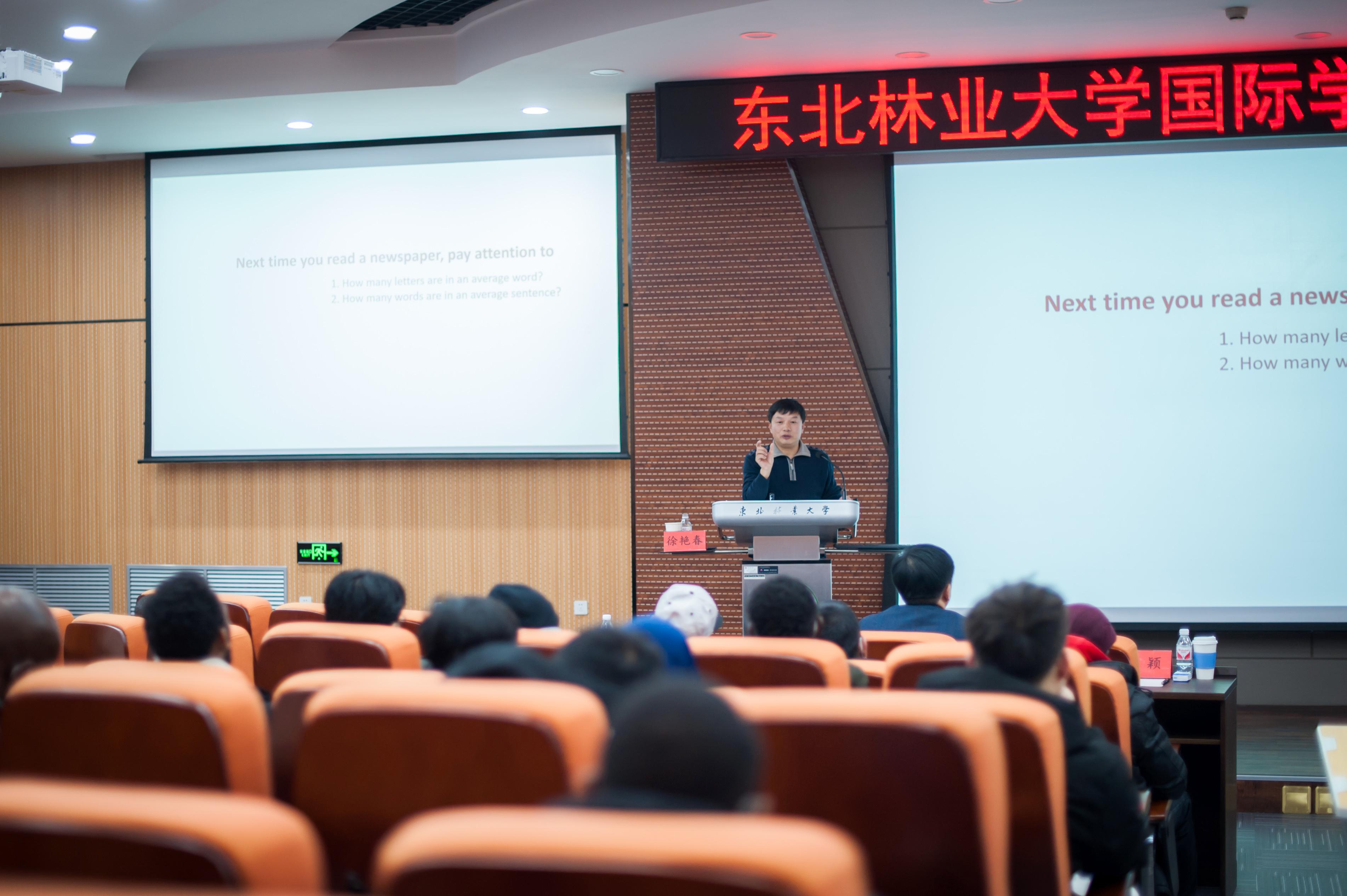 12月11日下午,国际交流学院邀请野生动物与自然保护地学院博士生导师徐艳春在奥林学院101会议室,作了题为《精美的包装:科技论文写作中的规划和策略》的全英文学术专题讲座。国际交流学院副院长岳喜华主持讲座,现场100余名中外学生与线上50余名境内外中外学生聆听了讲座,江苏大学的10余名国际学生也参加了线上讲座。